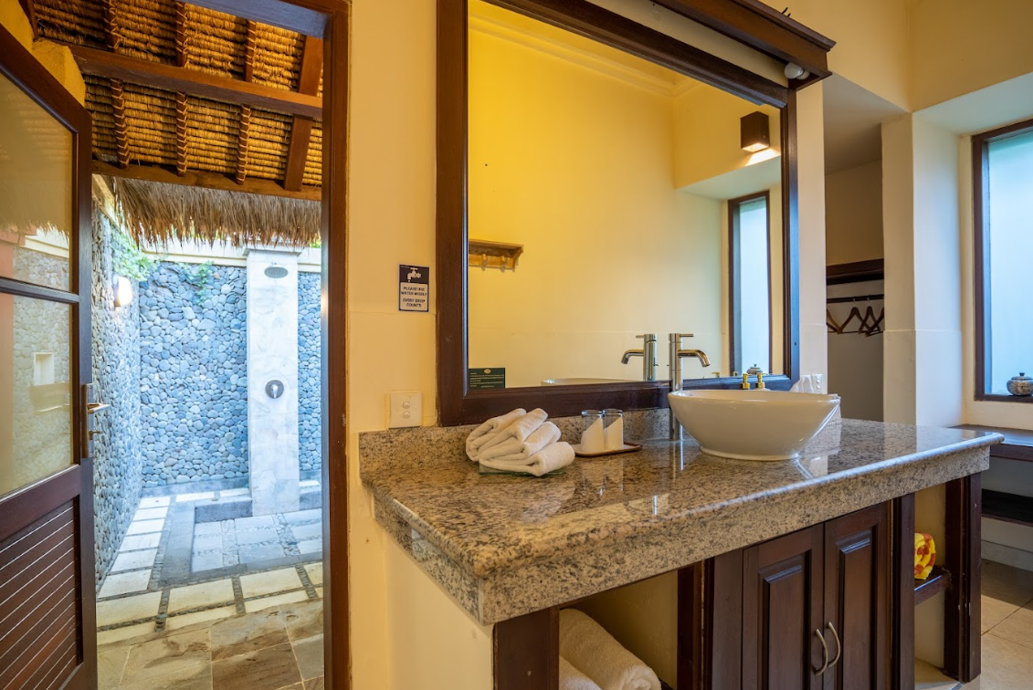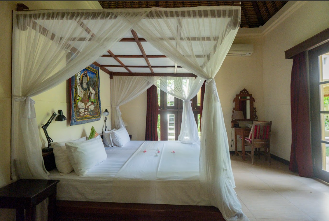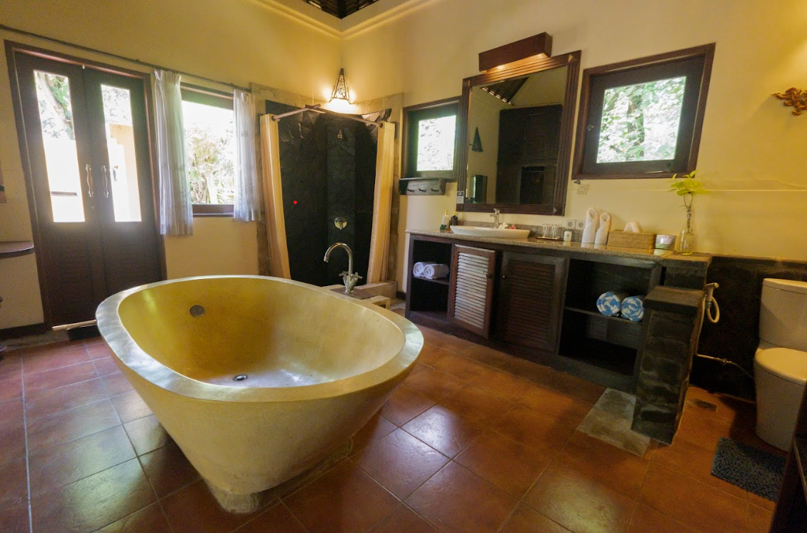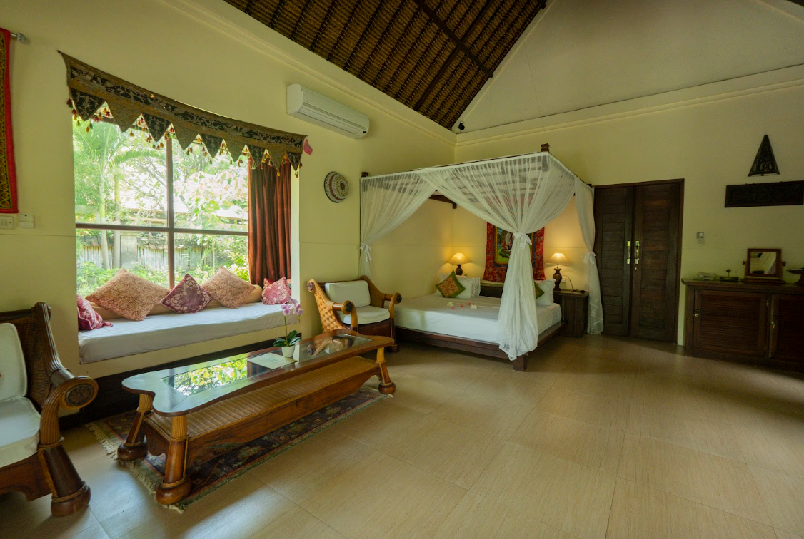 1 Master Suite : features spacious space, A/C, TV, DVD Player, In-Room Safe, Desk, Sitting area, Mosquito net, Open air Shower, Bathtub, en-suite King Bathroom 1 Junior Suite : Air conditioning, en-suite queen bathroom, Terrace, Desk