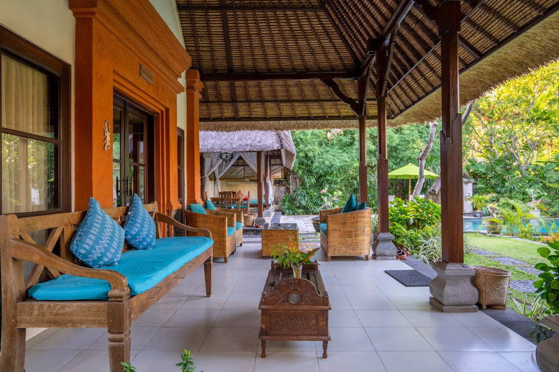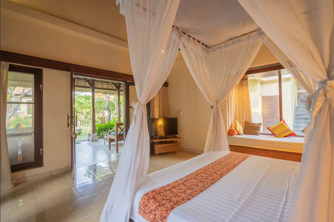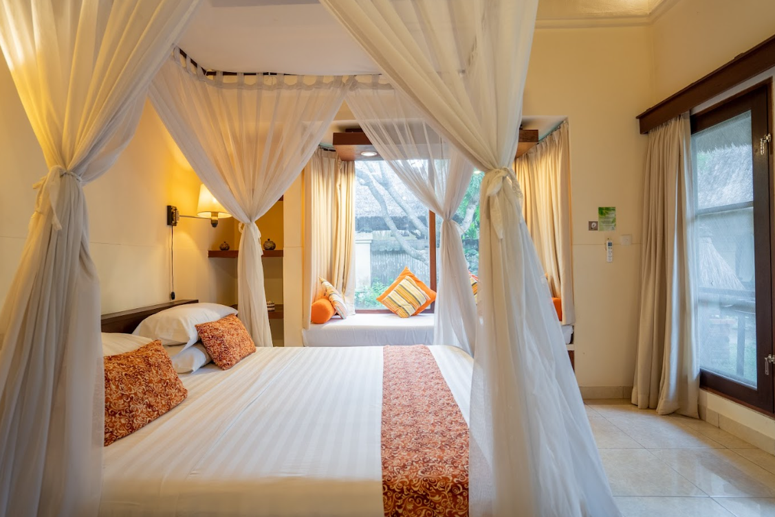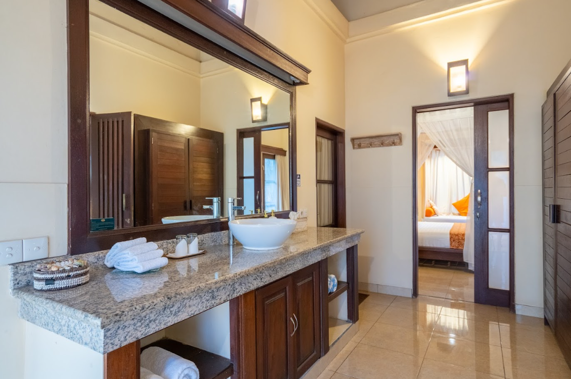 1 Master Suite : features spacious space, A/C, TV, DVD Player, In-Room Safe, Desk, Sitting area, Mosquito net, Open air Shower, Bathtub, en-suite King Bathroom 1 Junior Suite : Air conditioning, en-suite queen bathroom, Terrace, Desk